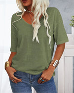 Round neck solid color loose T-shirt