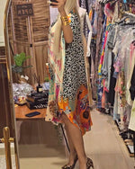 SPECIFICATIONS Style: Casual Material: Cotton Blends Dress Type: A-Line Dress Length: Maxi Neckline: V neck_V Pattern Type: Leopard Sleeve Length: Short Sleeve Details: Shirred Fit Type: Regular Season: Spring,Summer Occasion: Daily Package Includes: 1 x Dress SIZE TABLE Size Bust Length CM INCH CM INCH S 97 38.19 132 51.97 M 101...