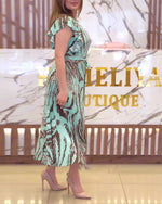 SPECIFICATIONS Style: Casual Material: Cotton Blends Dress Type: A-Line Dress Length: Maxi Neckline: V neck_V Pattern Type: Leopard Sleeve Length: Short Sleeve Details: Shirred Fit Type: Regular Season: Spring,Summer Occasion: Daily Package Includes: 1 x Dress SIZE TABLE Size Bust Length CM INCH CM INCH S 97 38.19 132 51.97 M 101...