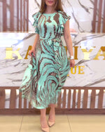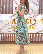 SPECIFICATIONS Style: Elegant Material: 5% Spandex,95% Polyester Dress Type: Shift dress Dress Length: Knee Length Neckline: V neck_V Pattern Type: Print Sleeve Length: Short Sleeve Fit Type: Regular Season: Spring, Summer, Fall Occasion: Daily Package Includes: 1 x Dress SIZE TABLE Size Bust Length Sleeves Shoulder ...