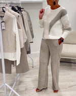Horseshoe Sleeve V-Neck Contrast Color Top