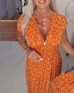 SPECIFICATIONS Style: Elegant Material: 5% Spandex,95% Polyester Dress Type: Shift dress Dress Length: Knee Length Neckline: V neck_V Pattern Type: Print Sleeve Length: Short Sleeve Fit Type: Regular Season: Spring, Summer, Fall Occasion: Daily Package Includes: 1 x Dress SIZE TABLE Size Bust Length Sleeves Shoulder ...