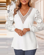Elegant V-Neck Lace Long-Sleeved T-Shirt