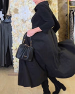 FEATURES Back Zipper: The sleek back zipper adds a modern touch, making it easy to wear and offering a seamless fit. Asymmetrical Design: The irregular, asymmetrical cut provides a chic and contemporary look, setting you apart from the crowd. Turn-down Collar: The classic turn-down collar adds a timeless elegance, suitable for both casual an...