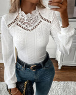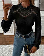 SPECIFICATIONS Top Type: Blouses Style: Casual Material: Cotton Blends Occasion: Daily Neckline: Round Neck Pattern Type: Solid Color Sleeve Type: Bat sleeve Sleeve Length: 3/4 Sleeve Fit Type: Regular Season: Spring,Summer Details: Patchwork,Lace Package Includes: 1 x Blouse SIZE TABLE Size Bust Length CM INCH CM INCH S 97 38.1...