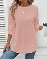 SPECIFICATIONS Top Type: Blouses Style: Casual Material: Cotton Blends Occasion: Daily Neckline: Round Neck Pattern Type: Solid Color Sleeve Type: Regular sleeve Sleeve Length: Long Sleeve Fit Type: Regular Season: Spring,Summer Details: Shirred Package Includes: 1 x Blouse SIZE TABLE Size Bust Length CM INCH CM INCH S 97 38.19 ...