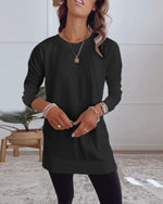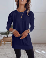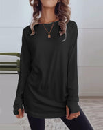 Round Neck Long Sleeve Solid Color Top