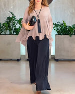 SPECIFICATIONS Top Type: Blouses Style: Casual Material: Cotton Blends Occasion: Daily Neckline: Round Neck Pattern Type: Solid Color Sleeve Type: Bat sleeve Sleeve Length: 3/4 Sleeve Fit Type: Regular Season: Spring,Summer Details: Patchwork,Lace Package Includes: 1 x Blouse SIZE TABLE Size Bust Length CM INCH CM INCH S 97 38.1...