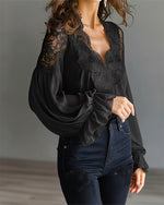 Fashionable Mesh Lotus Leaf Loose Blouse