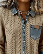 Stylish Denim Patchwork Long-Sleeved Sweatshirt