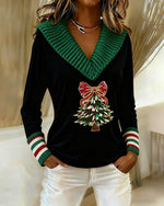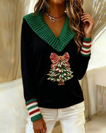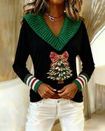 SPECIFICATIONS Top Type: Tops Style: Casual Material: 100% Polyester Occasion: Daily Neckline: V neck_V Pattern Type: Christmas Tree, Snowflake Sleeve Type: Regular sleeve Sleeve Length: Long Sleeve Fit Type: Regular Season: Spring, Fall, Winter Details: Patchwork Package Includes: 1 x Top SIZE TABLE Size Bust Length Sleeves Sho...