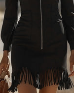 Zipper Lapel Long Sleeve Dress