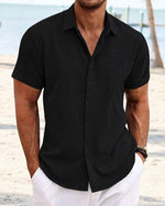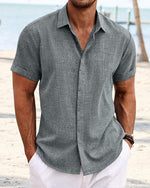 Men's solid color casual short sleeve shirt