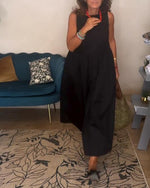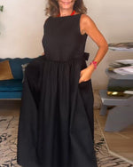 SPECIFICATIONS Style: Casual Material: 100% Polyester Dress Type: Shift dress Dress Length: Maxi Neckline: Round Neck Pattern Type: Solid Color Sleeve Length: Sleeveless Details: Pocket, Shirred Fit Type: Regular Season: Spring, Summer, Fall Occasion: Daily Package Includes: 1 x Dress SIZE TABLE Size Bust Length Sleeve Len...