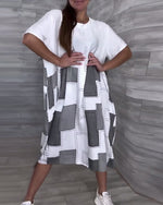 SPECIFICATIONS Style: Casual Material: 5% Spandex, 95% Polyester Dress Type: Shift dress Dress Length: Knee Length Neckline: V neck_V Pattern Type: Geometric Print, Print Sleeve Type: Flare Sleeve Sleeve Length: 3/4 Sleeve Fit Type: Loose Season: Spring, Summer, Fall Occasion: Daily Package Includes: 1 x Dress   SIZE TABLE Si...