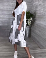SPECIFICATIONS Style: Elegant Material: 100% Polyester Dress Type: Shift dress Dress Length: Knee Length Neckline: Round Neck Pattern Type: Solid Color Sleeve Type: Regular sleeve Sleeve Length: Short Sleeve Details: Shirred Fit Type: Regular Season: Spring, Summer Occasion: Daily, Vacation Package Includes: 1 x Dress   SIZE TABLE ...