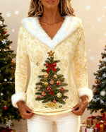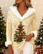 Christmas Print Fur Collar Top