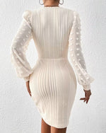 SPECIFICATIONS Style: Elegant Material: Spandex, Polyester Dress Type: Shift dress Dress Length: Knee Length Neckline: V neck_V Pattern Type: Solid Color Sleeve Type: Slit Sleeves Sleeve Length: Half Sleeve Details: Patchwork Fit Type: Regular Season: Spring, Summer Occasion: Daily Package Includes: 1 x Dress SIZE TABLE Size ...