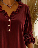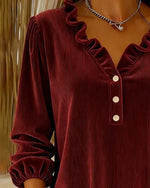 SPECIFICATIONS Top Type: Blouses Style: Elegant Material: 100% Polyester Occasion: Daily, Vacation Neckline: V neck_V Pattern Type: Solid Color Sleeve Type: Flare Sleeve Sleeve Length: Long Sleeve Fit Type: Regular Season: Fall, Winter Details: Ruffle Package Includes: 1 x Blouse   SIZE TABLE Size US Bust Length Sleeve Leng...