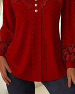 SPECIFICATIONS Top Type: Blouses Style: Elegant Material: 100% Polyester Occasion: Daily, Vacation Neckline: V neck_V Pattern Type: Solid Color Sleeve Type: Flare Sleeve Sleeve Length: Long Sleeve Fit Type: Regular Season: Fall, Winter Details: Ruffle Package Includes: 1 x Blouse   SIZE TABLE Size US Bust Length Sleeve Leng...