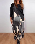 NEW Icon1 Casual Geometric Print Wide-Leg Pants Two-Piece Set