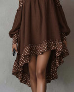 SPECIFICATIONS Style: Casual, Elegant Material: Cotton Blends Dress Type: A-Line Dress Length: Midi Neckline: V neck_V Pattern Type: Polka Dot, Print Sleeve Type: Regular sleeve Sleeve Length: Short Sleeve Details: Lace Up, Buttons Fit Type: Loose Season: Spring, Summer, Fall Occasion: Daily Package Includes: 1 x Dress (With Belt) SIZE TA...