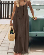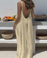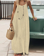 SPECIFICATIONS Style: Casual Material: 100% Cotton Dress Type: Shift dress Dress Length: Maxi Pattern Type: Solid Color Sleeve Length: Sleeveless Details: Pocket Fit Type: Regular Season: Spring,Summer,Fall Occasion: Daily Package Includes: 1 x Dress SIZE TABLE Size Bust Length CM INCH CM INCH S 95 37.40 117 46.06 M 100 39.37 118....