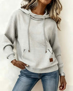 Casual V-Neck Hooded Solid Color Loose Sweatshirt