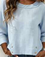 Solid Color Lapel Cutout Patchwork Blouse