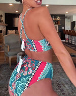 Leopard Floral Tie Halter Bikini