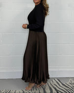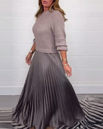 Casual contrast color patchwork pleated dress