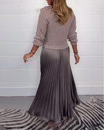 Solid Color Long-Sleeved Patchwork Dress