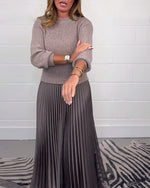 Elegant Solid Color Round Neck Full Skirt Dress