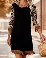 Deep V-Neck Leopard Print Two-Piece Swimdress