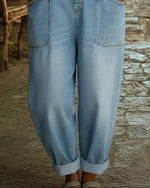 Stretch-Waist Straight Denim Pants