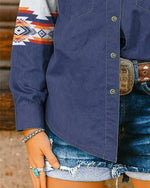 Color-Blocked Leopard Print Long-Sleeved Shirt