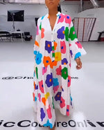 Colorful flower print bell sleeve casual dress