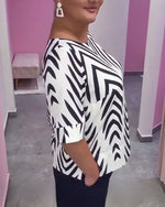 Drop-Shoulder V-Neck Three-Quarter Sleeve Blouse