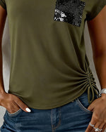 SPECIFICATIONS Top Type: Tops Style: Casual Material: Cotton Blends Occasion: Daily Neckline: Round Neck Pattern Type: Sequin,Solid Color Sleeve Type: Regular sleeve Sleeve Length: Long Sleeve Fit Type: Loose Season: Fall,Winter Package Includes: 1 x Top SIZE TABLE Size Bust Length CM INCH CM INCH S 97 38.19 68 26.77 M 101 39.7...