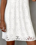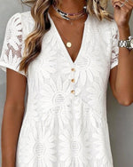 V-Neck Partial Opening Lace Patchwork T-Shirt