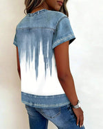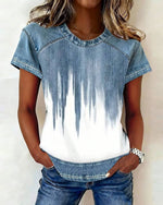 Denim Patchwork Striped Short Sleeve T-Shirt