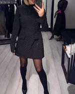Long-Sleeved Solid Color Rhinestone Dress