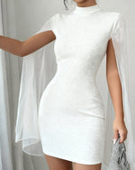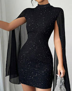 V-Neck Fine Glitter Mesh Patchwork Loose Dress