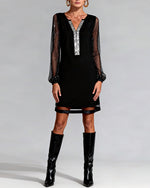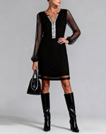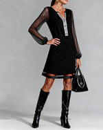 SPECIFICATIONS Style: Casual Material: Lace,Velvet Dress Type: A-Line Dress Length: Midi Neckline: V neck_V Sleeve Type: Regular sleeve Sleeve Length: Long Sleeve Details: Patchwork Fit Type: Regular Season: Fall,Winter Occasion: Daily Package Includes: 1 x Dress SIZE TABLE Size Bust Length CM INCH CM INCH S 97 37.4 120 47.24 M...