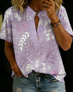 SPECIFICATIONS Top Type: Blouses Style: Casual Material: Cotton Blends Occasion: Daily Neckline: V neck_V Pattern Type: Print Sleeve Type: Ruffle Sleeve Sleeve Length: 3/4 Sleeve Fit Type: Regular Season: Spring,Summer Details: Buttons,Ruffle Package Includes: 1 x Blouse SIZE TABLE Size Bust Length CM INCH CM INCH S 97 38.19 65 ...