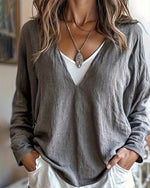 SPECIFICATIONS Top Type: Blouses Style: Casual Material: Cotton Blends Occasion: Daily Neckline: V neck_V Pattern Type: Color Block Sleeve Type: Regular sleeve Sleeve Length: Long Sleeve Fit Type: Regular Season: Spring,Summer Package Includes: 1 x Blouse SIZE TABLE Size Bust Length CM INCH CM INCH S 97 38.19 65 25.59 M 101 39...