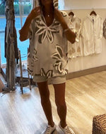 A Floral Foliage Print Short-Sleeve Dress