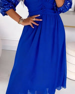 SPECIFICATIONS Style: Chic Material: Velvet Dress Type: Wrap Dress Length: Above-knee Neckline: V neck_V Pattern Type: Sequin,Solid Color Sleeve Type: Lantern Sleeve Sleeve Length: Long Sleeve Details: Shirred Fit Type: Regular Season: Fall,Winter Occasion: Daily Package Includes: 1 x Dress SIZE TABLE Size Bust Length CM INCH CM INCH ...