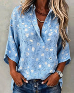 SPECIFICATIONS Top Type: Shirt Style: Casual Material: Cotton Blends Occasion: Daily Neckline: V neck_V Pattern Type: Floral Sleeve Type: Regular sleeve Sleeve Length: 3/4 Sleeve Fit Type: Regular Season: Spring,Summer Details: Buttons Package Includes: 1 x Shirt SIZE TABLE Size Bust Length CM INCH CM INCH S 97 38.19 68 26.77 M...