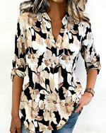 SPECIFICATIONS Top Type: Shirt Style: Casual Material: Cotton Blends Occasion: Daily Neckline: V neck_V Pattern Type: Floral Sleeve Type: Regular sleeve Sleeve Length: 3/4 Sleeve Fit Type: Regular Season: Spring,Summer Details: Buttons Package Includes: 1 x Shirt SIZE TABLE Size Bust Length CM INCH CM INCH S 97 38.19 68 26.77 M...